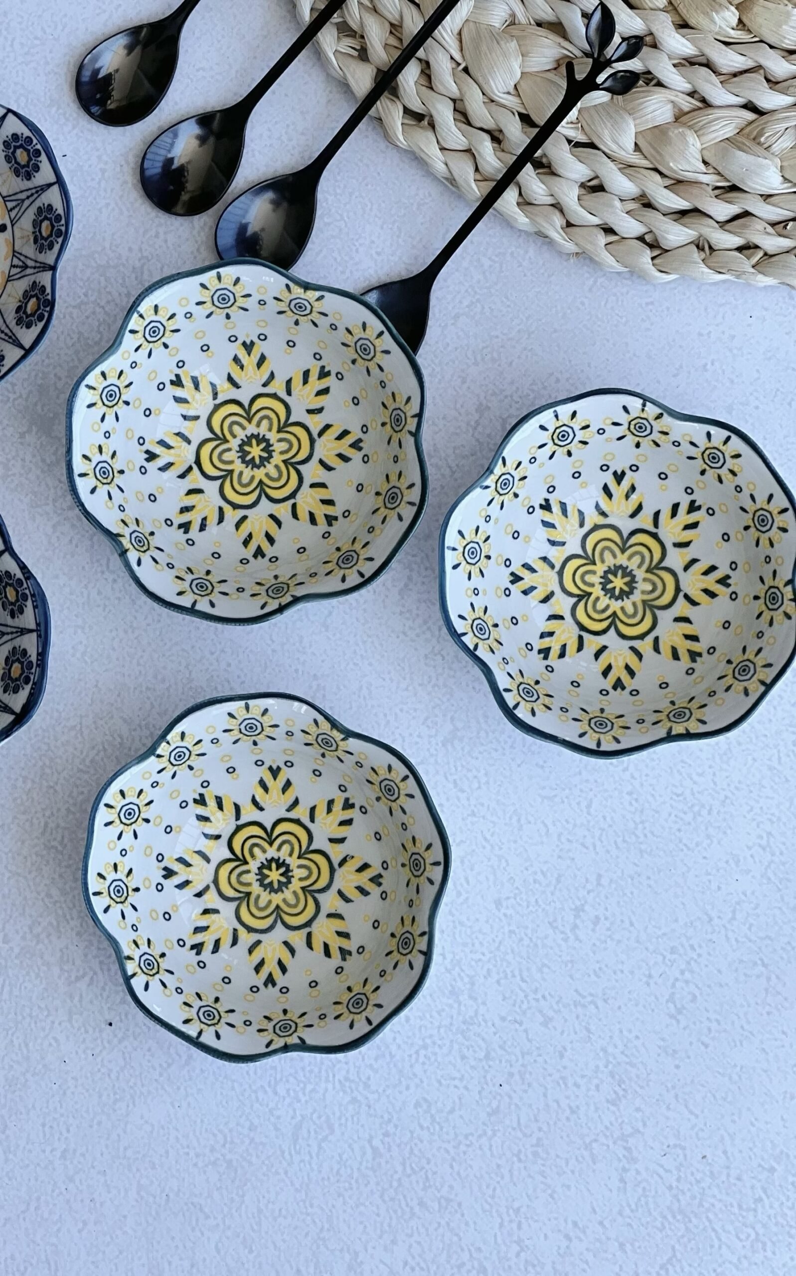 Dip de cerámica diseño mandala con verde y amarillo