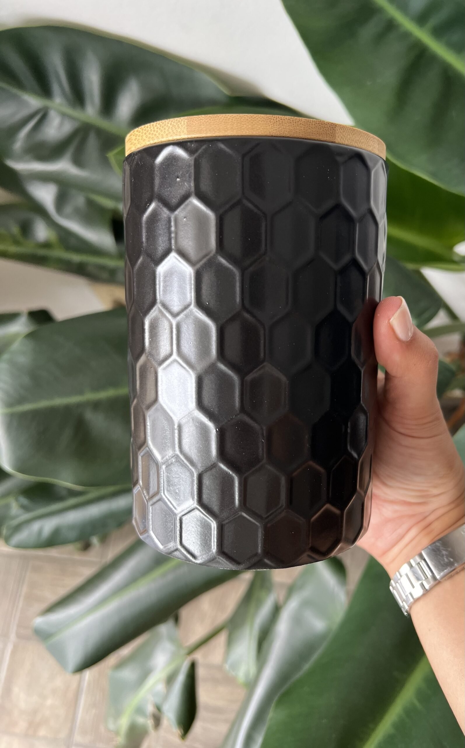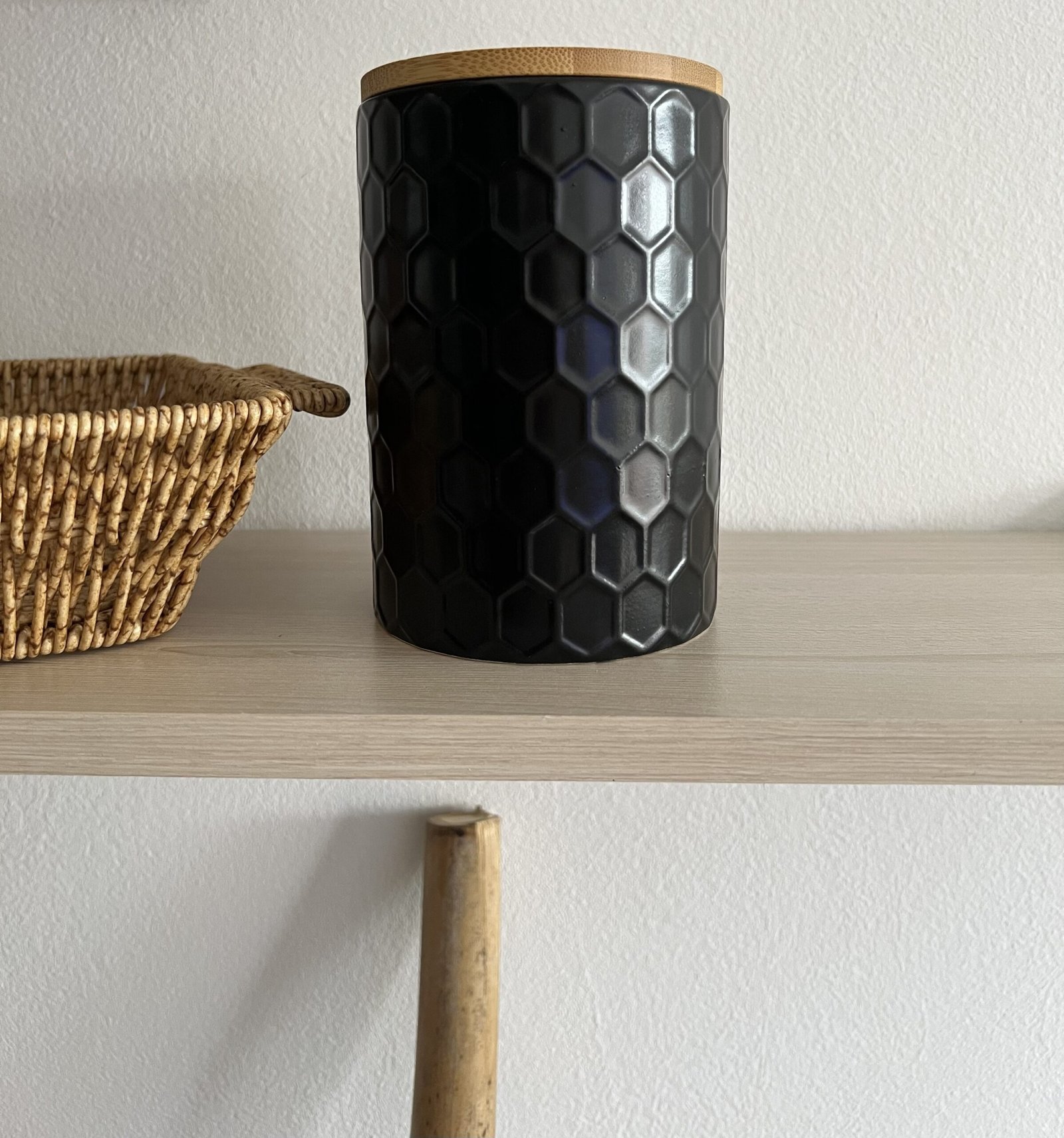Recipiente multiuso de cerámica labrado con tapa de madera